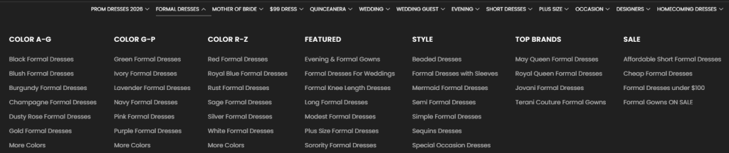 The website offers a wide range of formal dresses catering to different tastes, body types, and occasions. Some of the key categories include:
