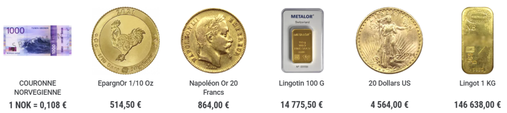 Sur le site de CHANGE DE LA BOURSE, les utilisateurs peuvent accéder à plusieurs catégories de produits financiers physiques : les pièces d’or classiques comme les Napoléons ou les 20 Dollars US, les lingots d’or et d’argent de différentes tailles, et parfois des pièces de collection destinées à la fois à l’investissement et à la collection.