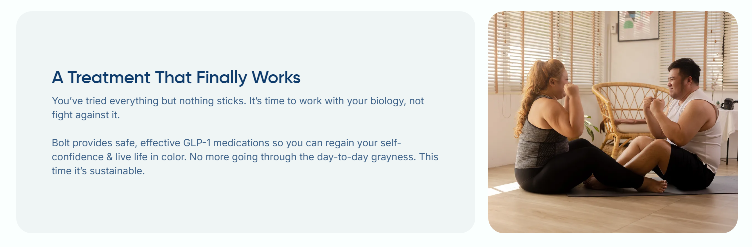 Whether you’re trying to shed a few pounds or make a significant change, Bolt Pharmacy provides an affordable solution that actually works. Their approach focuses on using GLP-1 medications, which work with your body’s biology, not against it. This ensures that you don’t just lose weight temporarily, but in a way that can be maintained for the long haul.