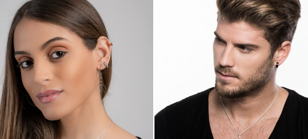 • Earrings: Studs, hoops, surgical‑steel and silver earrings; ear‑piercing jewellery for both fashion and piercing use.