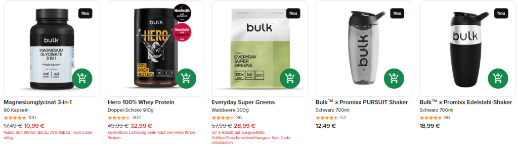 Zum anderen unterstützt Bulk den Alltag durch einfache Anwendung und vielseitige Produkte. Ob Proteinshakes, Pulver oder Kapseln – die Produkte lassen sich unkompliziert in Ernährung und Trainingsplan integrieren. Kunden können ihre Gesundheit, Fitness und Leistungsfähigkeit gezielt optimieren.
