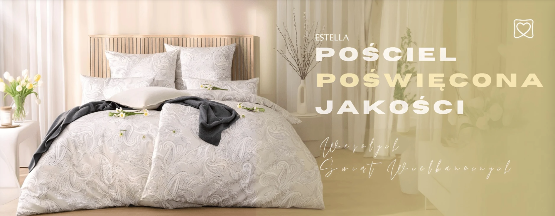 Dobry sen to podstawa zdrowia i samopoczucia. Estella oferuje szeroki wybór wysokiej jakości pościeli, koców i tekstyliów domowych, które łączą wygodę, styl i trwałość. Produkty tej marki są projektowane z myślą o osobach ceniących elegancję oraz funkcjonalność w codziennym życiu. Dzięki nowoczesnym materiałom i starannemu wykonaniu, każda sypialnia może stać się oazą relaksu i komfortu.