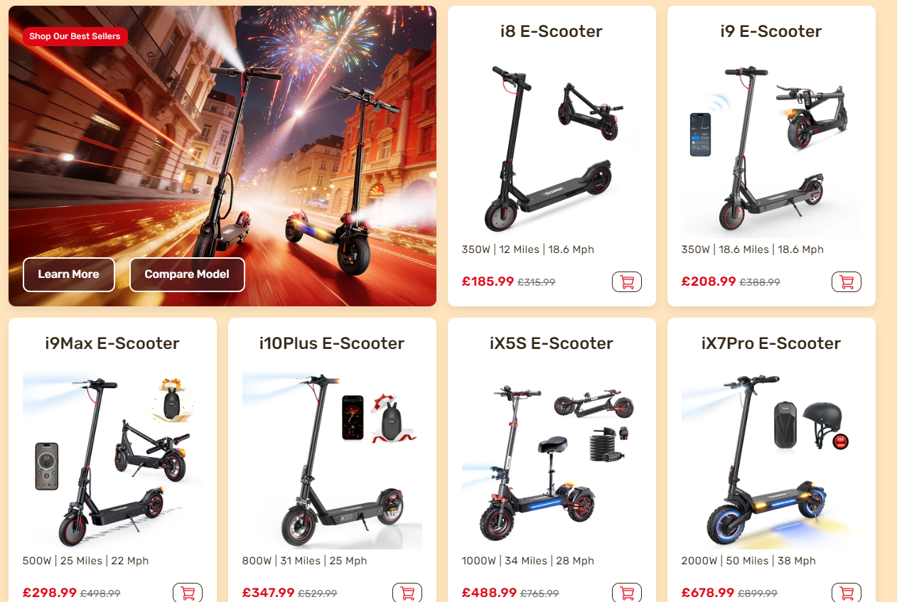 - Electric Scooters: Iscooterglobal offers a wide range of electric scooters, each designed for different kinds of riders. Whether you’re looking for a lightweight commuter scooter or a more powerful model for longer distances and higher speeds, the site features scooters that can accommodate all your preferences. Their collection includes scooters with varying ranges, speeds, and features, ensuring there’s something for everyone.