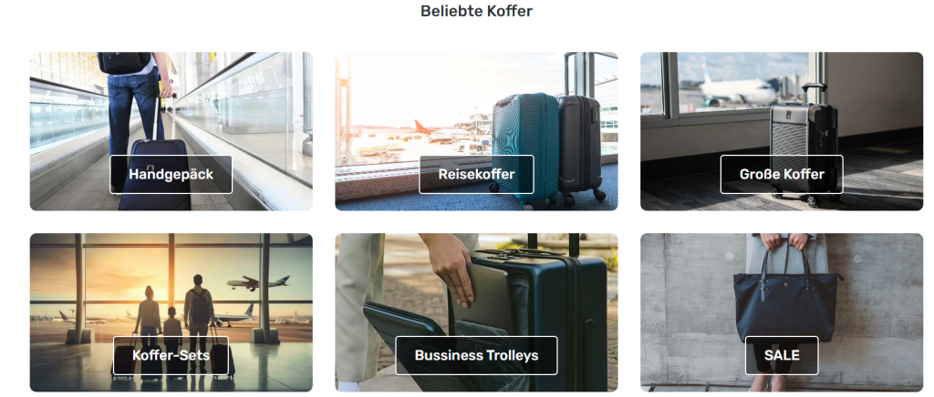Das Einkaufserlebnis bei Koffer ist darauf ausgelegt, Kund:innen größtmögliche Bequemlichkeit zu bieten. Die übersichtlich gestaltete Webseite ermöglicht es, Produkte nach Kategorien, Marken, Größen oder Preisklassen zu filtern. Detaillierte Produktbeschreibungen, Maße, Gewicht, Kundenbewertungen und hochwertige Produktfotos erleichtern die Auswahl und helfen dabei, eine fundierte Kaufentscheidung zu treffen.