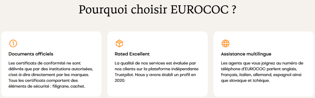 Le produit principal proposé par Eurococ est le certificat de conformité européen, souvent appelé COC (Certificate of Conformity).