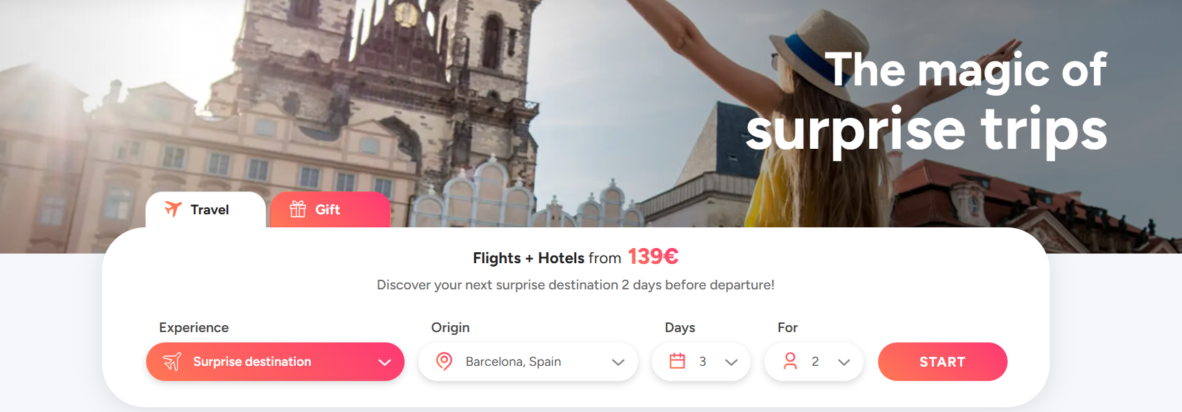 Kolejną różnicą jest fakt, że element zaskoczenia ma moc pozytywnie wpływać na całe doświadczenie podróżnicze — zamiast godzin spędzonych na planowaniu trasy, szukaniu hoteli i lotów, użytkownik otrzymuje gotowy plan z atrakcyjną ceną i lokalizacją, często w miejscach, o których sam by nie pomyślał.