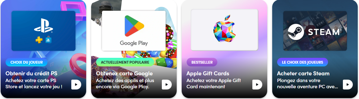 Sur Startselect, les joueurs ont accès à une grande variété de produits, allant des jeux récents aux abonnements pour services en ligne. La boutique propose également des cartes cadeaux et des monnaies virtuelles pour différentes plateformes, permettant de compléter son expérience de jeu ou d’offrir des cadeaux à d’autres passionnés.