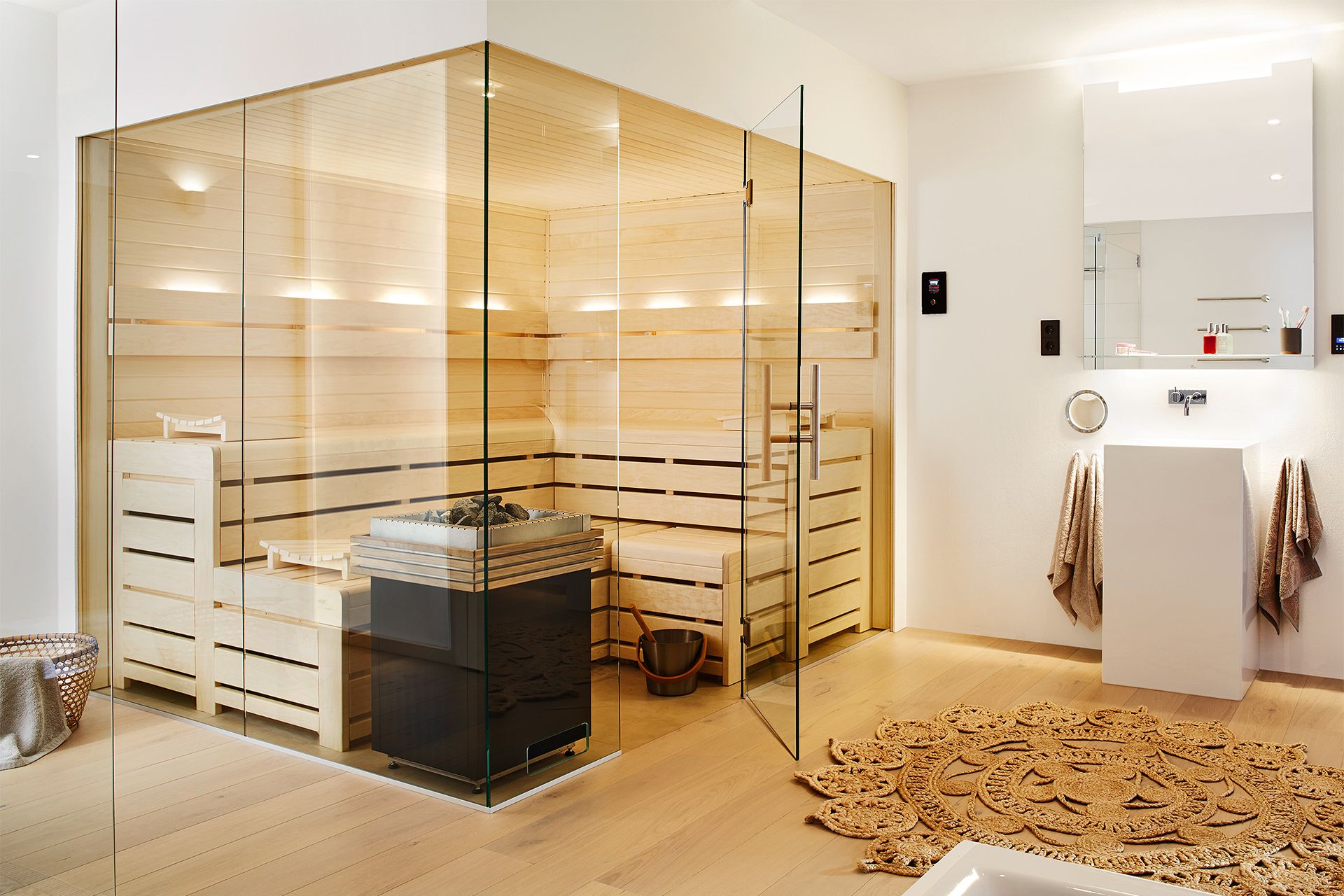 Ein besonderer Wert von Saunaloft liegt in der Gestaltung der Saunen. Neben Funktionalität spielt das Design eine große Rolle. Kund:innen können zwischen verschiedenen Holzarten, Glasfronten, Beleuchtungssystemen und Zubehör wählen, um ihre Sauna individuell zu gestalten. So wird die Sauna zu einem harmonischen Bestandteil des Wohnraums und gleichzeitig zu einem persönlichen Rückzugsort.