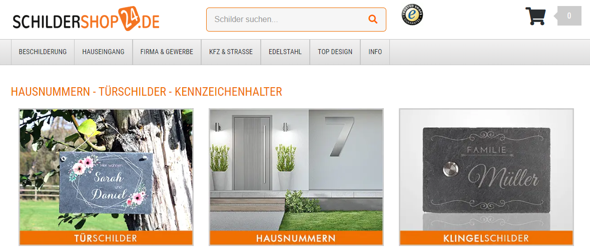 Produktangebot bei Schildershop24