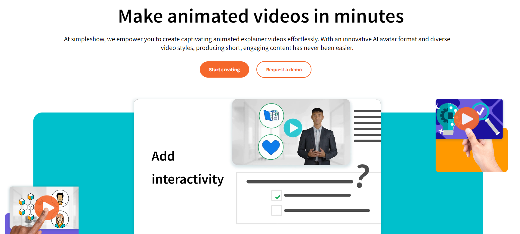 Simpleshow ist eine kreative Online‑Plattform, die sich darauf spezialisiert hat, komplexe Inhalte verständlich und ansprechend in Form von Erklärvideos umzusetzen. Egal ob Unternehmen, Bildungseinrichtungen oder Einzelpersonen – hier finden Nutzer:innen eine Lösung, um schwierige Sachverhalte einfach und effizient zu kommunizieren. Simpleshow verbindet dabei professionelle Darstellung mit klaren Botschaften, um Inhalte für ein breites Publikum zugänglich zu machen.