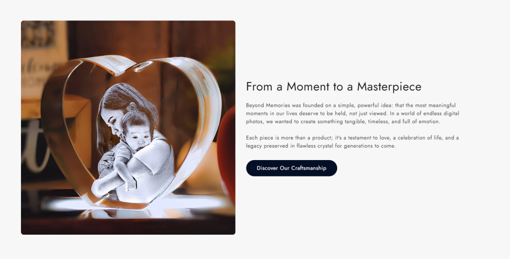 At Beyond Memories, every photograph is treated as a story worth preserving. By transforming 2D images into laser-engraved 3D crystals, the brand ensures that moments are immortalized in a way that is both visually striking and emotionally meaningful. With customizable shapes, personalized text, and optional LED displays, Beyond Memories turns everyday photographs into extraordinary keepsakes that will be treasured for years to come.