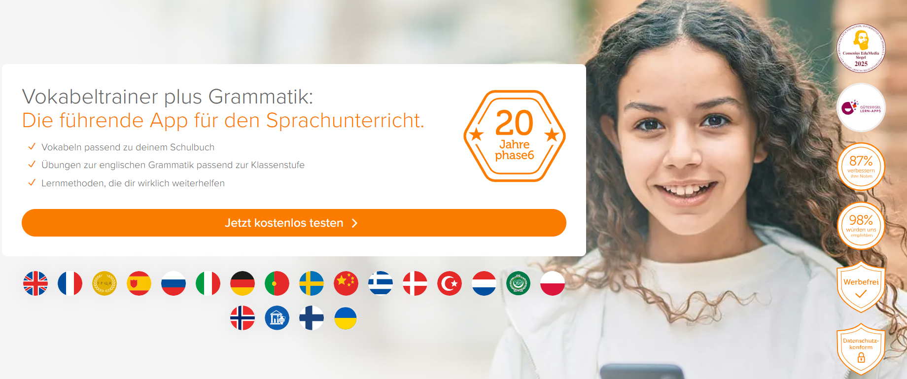 Produkte von Phase-6 erleichtern das Lernen erheblich. Ob für die Schule, das Studium oder das berufliche Weiterlernen – die adaptive Lernsoftware ermöglicht ein strukturiertes, effektives und motivierendes Lernen. Nutzer:innen können ihren Fortschritt verfolgen, gezielt Schwächen ausgleichen und ihre Sprachkenntnisse nachhaltig verbessern.