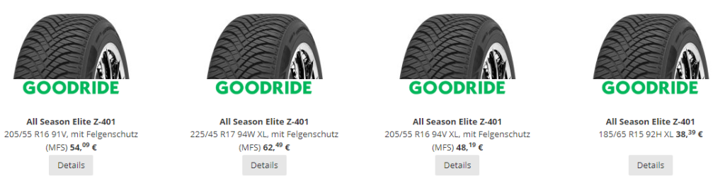 Zudem bietet der Shop detaillierte Produktinformationen zu Profiltiefe, Reifentyp, Tragfähigkeit und Geschwindigkeitsindex, sodass Kund:innen fundierte Entscheidungen treffen können.