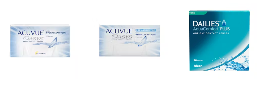 - A wide selection of contact lenses, including daily lenses, two‑week lenses, monthly lenses, toric lenses (for astigmatism), multifocal lenses, and even coloured lenses or “fashion” lenses.